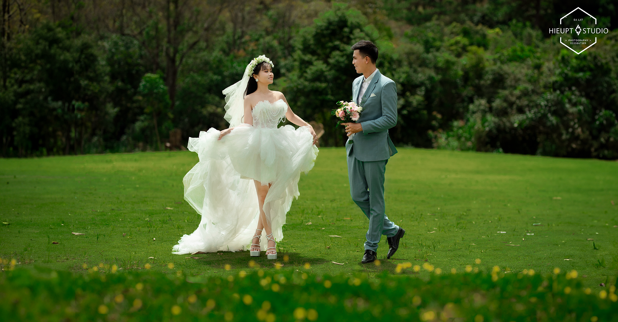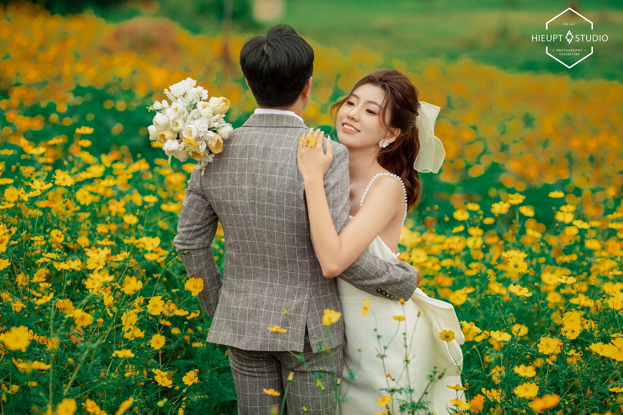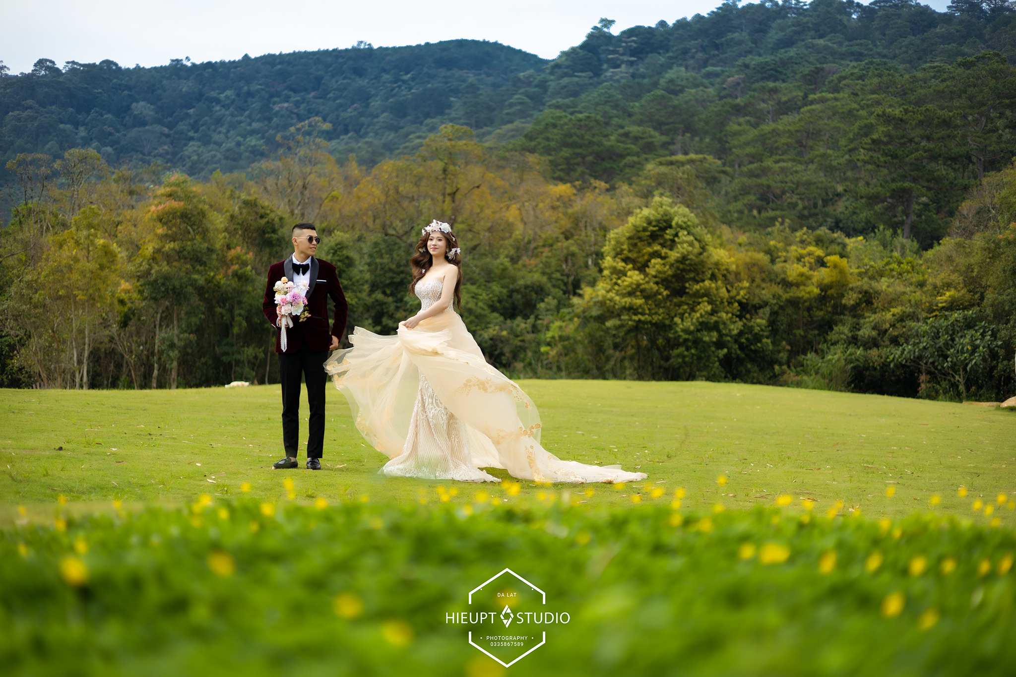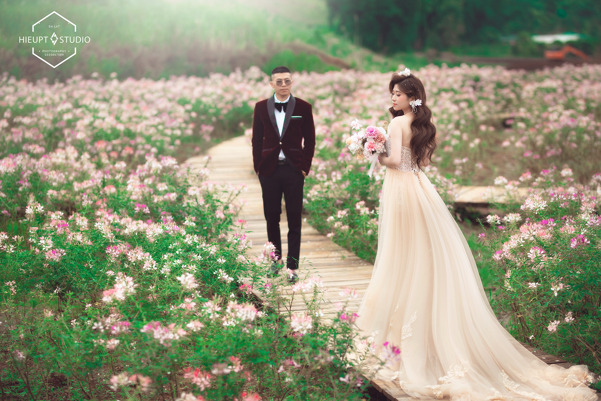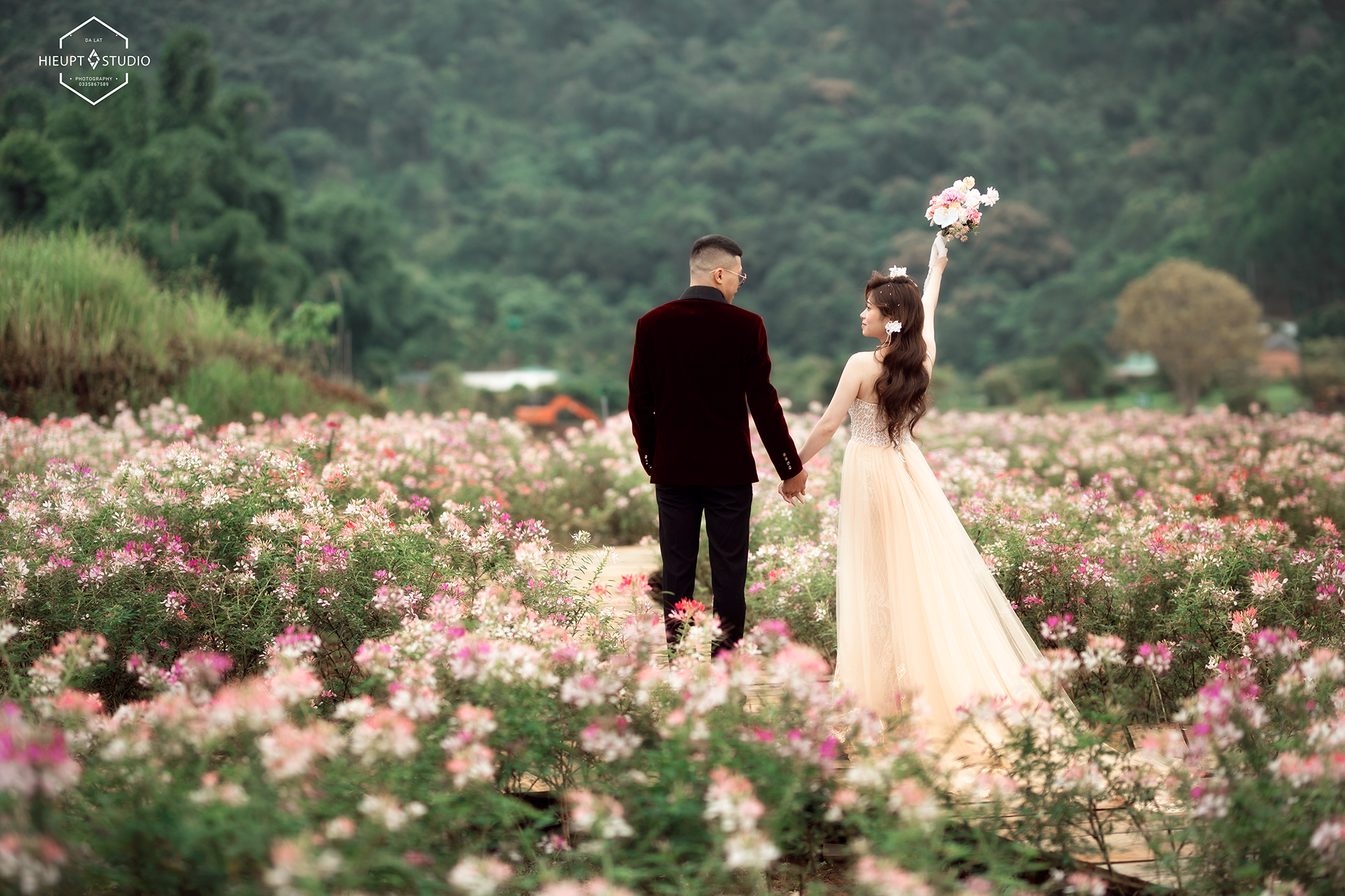 Vé vào cổng là 100k/ Người, ở đây dâu rể có thể chụp 2 váy hoặc 1 váy kèm 1 bộ đồ tự do nha