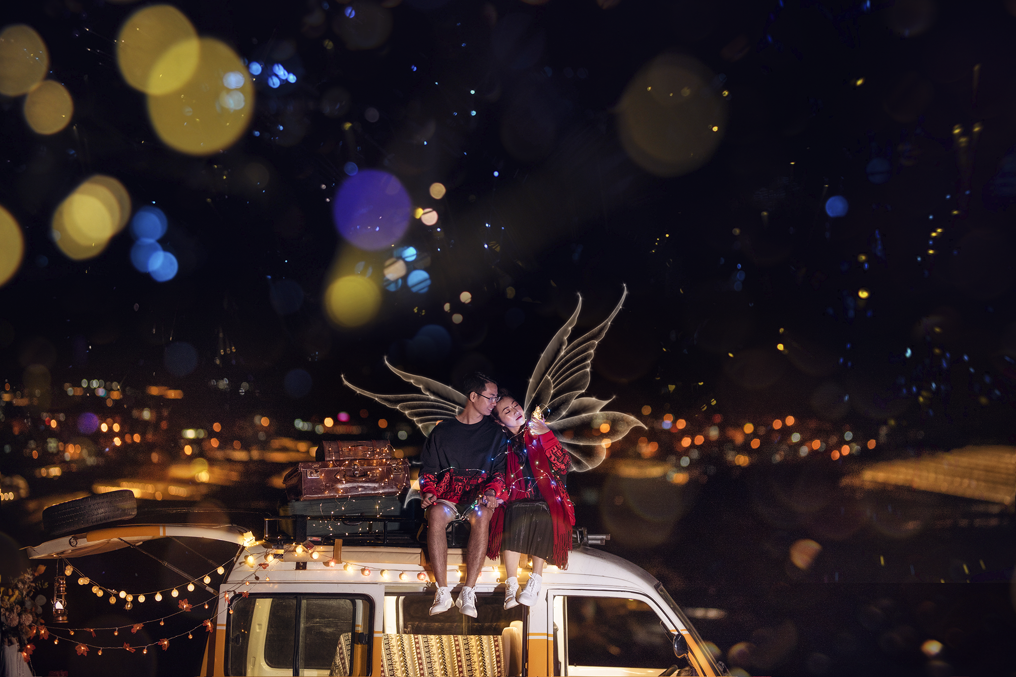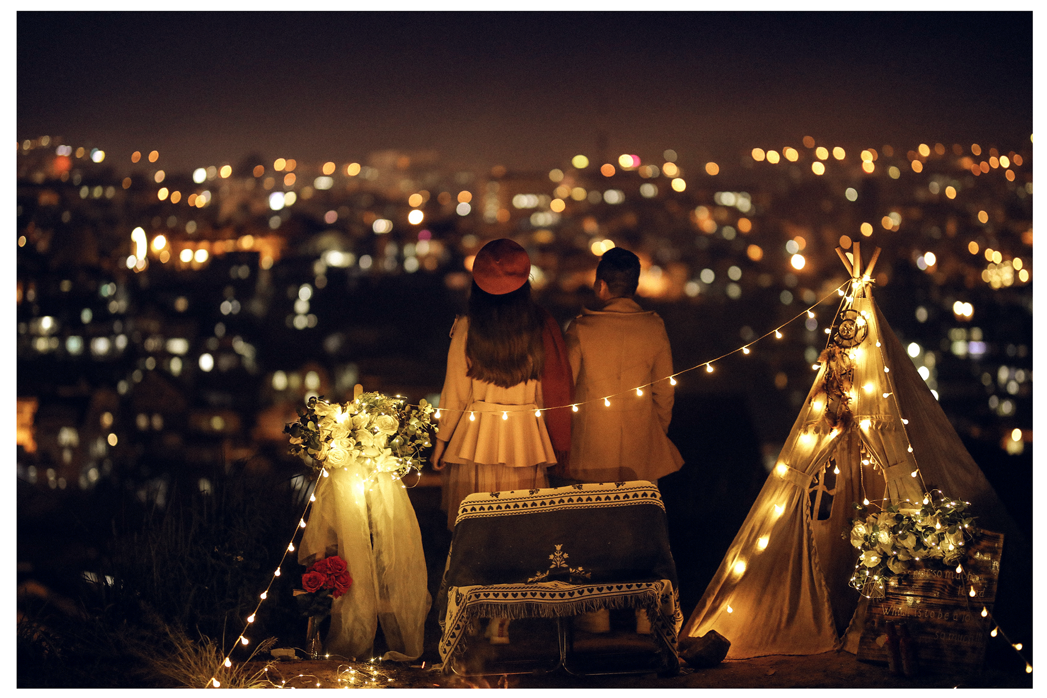 Lên Đà Lạt chụp ảnh cưới thì không thể bỏ qua cảnh chụp đêm phải không cả nhà, Giữa cái không khí se lạnh của Đà Lạt cùng với hơi nóng của đống lữa bập bùng sau lưng là thành phố nhìn từ trên cao xuống cùng với những ánh sáng lập loè của thành phố sương mù sẽ tạo nên 1 kỉ niệm không thể nào quên khi đến với Đà Lạt
